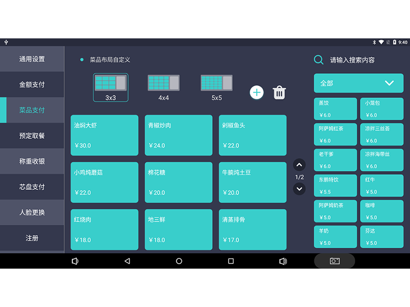 支持用戶自定義菜品列表樣式(3*3/4*4/5*5排列方式);